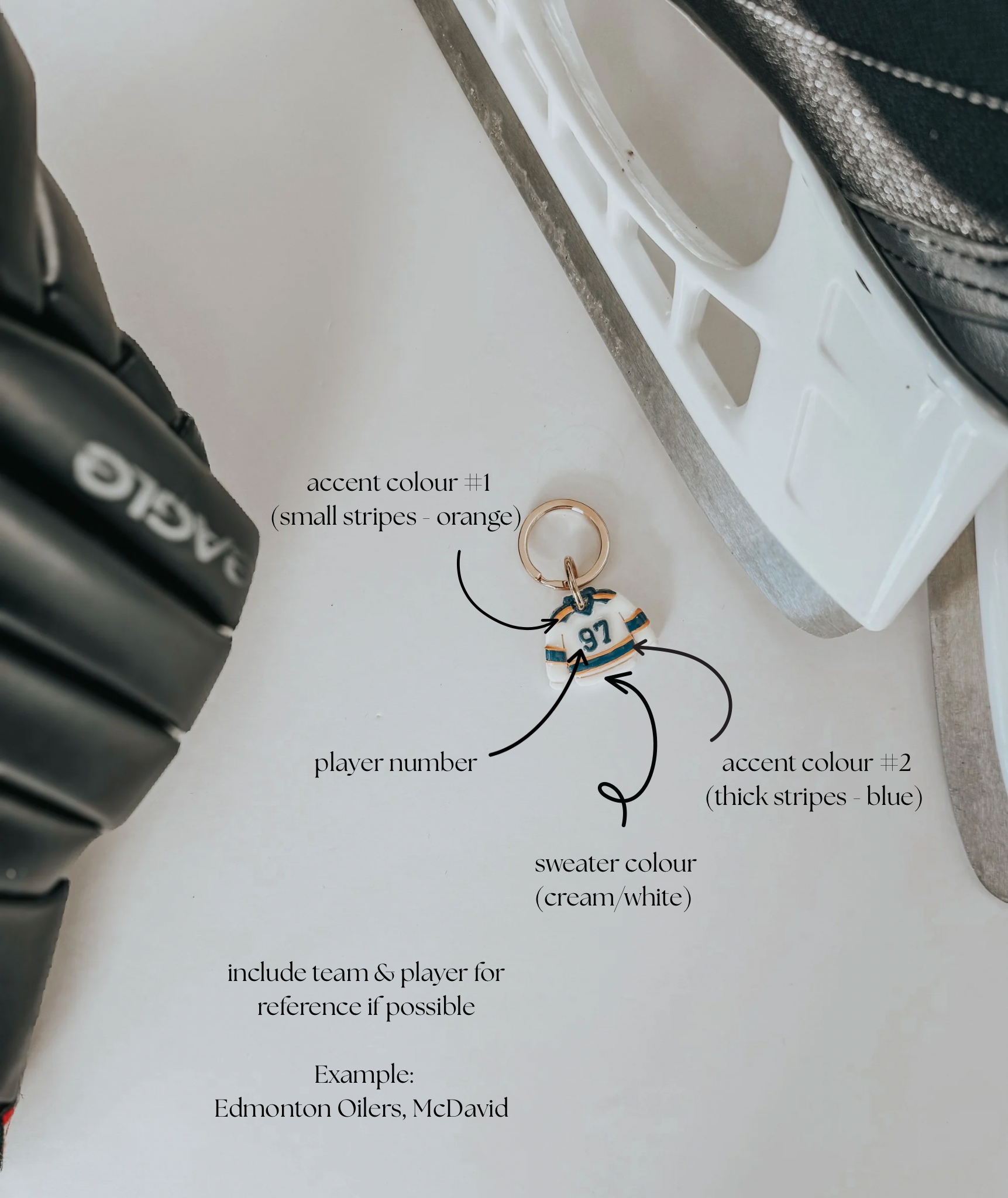 Choose your team-inspired palette, player number, and accent colours to create a tag that feels personal, nostalgic, and completely one-of-a-kind. Whether you’re honouring your favourite player, your hometown team, or your little athlete, this tiny sweater carries big sentiment.