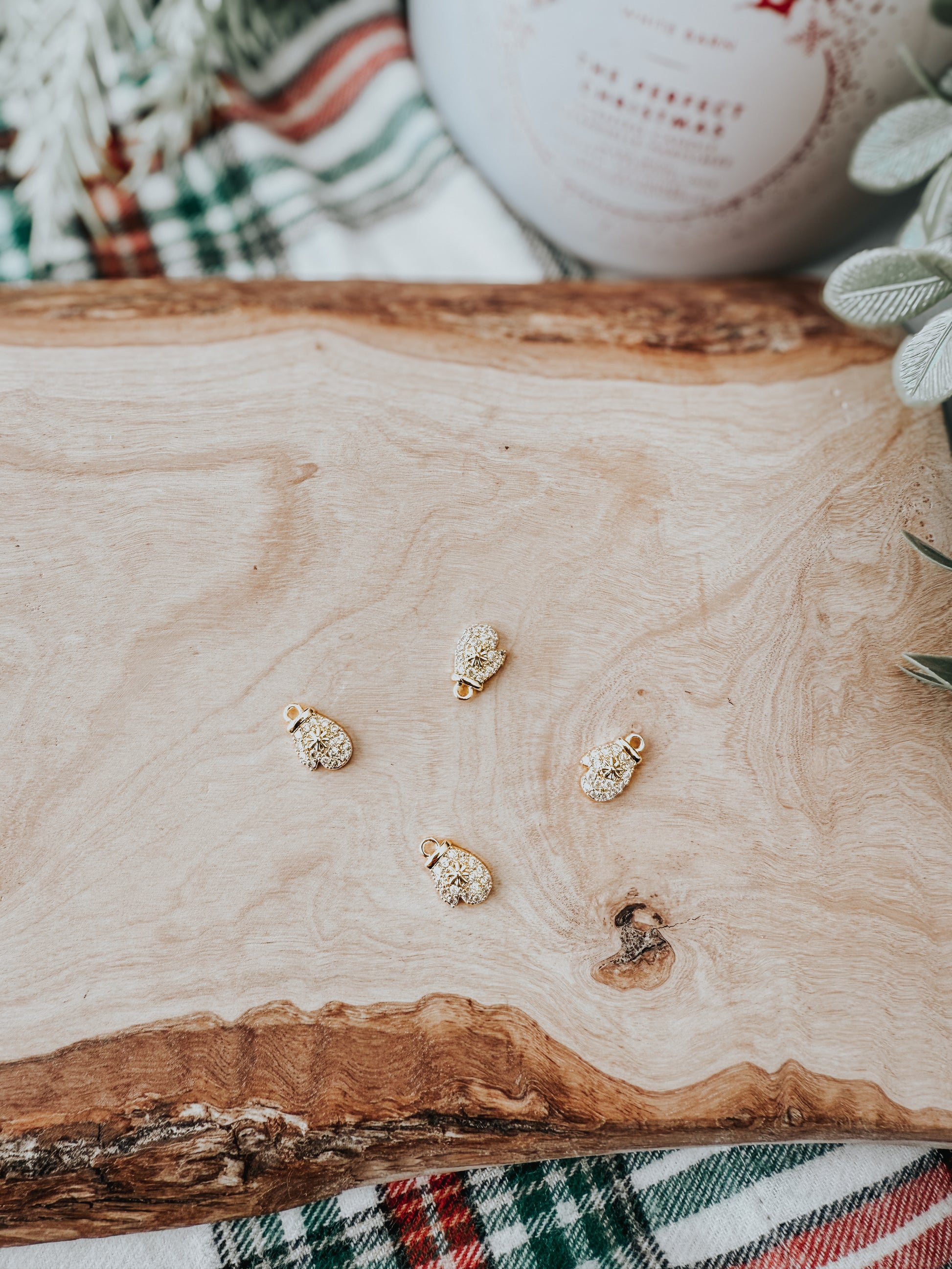 18K gold plated mitten with pave cubic zirconia charm (.5”)